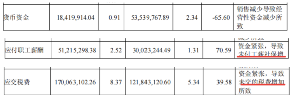 截止到年末,公司只有0.18亿元的现金储备,已经到了无法给员工发工资、缴纳社保与上缴税收的境地。