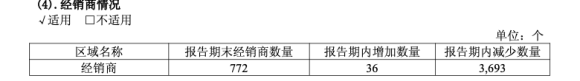 在行业下行周期,经销商数量最能反映市场对一个企业的信心。年报披露,截至年末,公司经销商数量为772家,减少了3693家,同比骤减82.71%。
