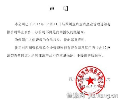 郎酒声明终止与1919合作并拒绝质保 身陷舆论漩涡