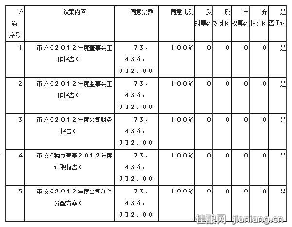 衡水老白干酒业股份有限公司2012年年度股东大会决议公告