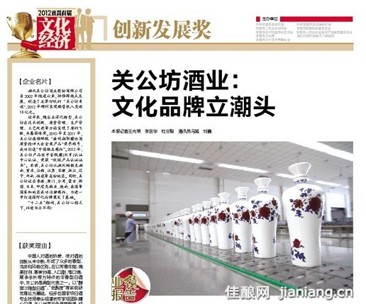 关公坊酒业荣获宜昌文化经济创新发展奖