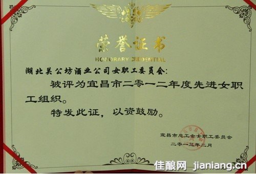 关公坊酒业女工委获宜昌市年度先进女职工组织称号